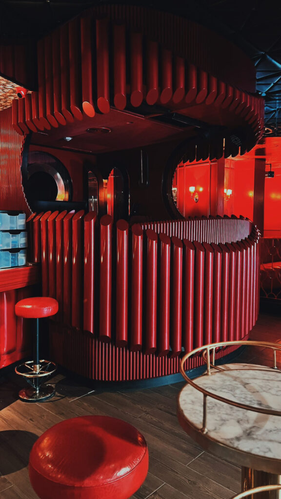 El estudio Uno+Uno nos convocó para dar vida al concepto que tenían para la cabina del DJ en Tequila Club. Co-diseñamos con ellos y California Estudio en cada etapa del proceso, desde la validación inicial con renders y muestras de materiales hasta la fabricación digital que permitió un ensamblaje preciso. Utilizamos una mezcla de caños metálicos laqueados con pintura automotriz, detalles de bronce y espejos, junto con una pantalla central. El diseño, inspirado en una fusión de art deco y elementos paramétricos, fue instalado in situ para completar este desafiante proyecto.