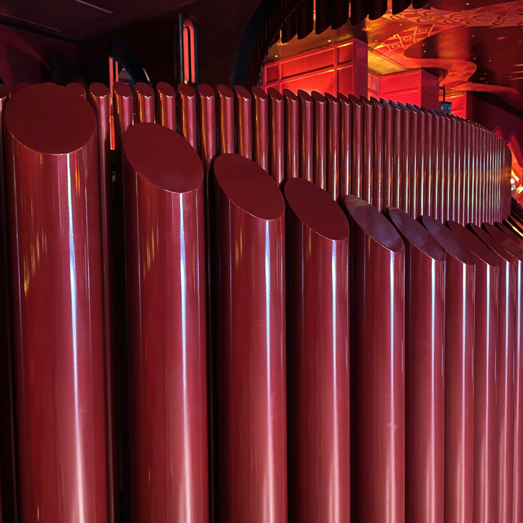 CAÑO REDONDO DE Ø4” Y 1” CORTADOS LASER, LAQUEADOS.