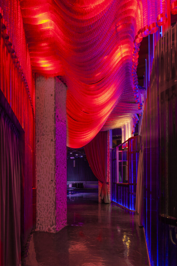 Se desarrolló en conjunto con el estudio Hitzig Militello y California Estudio, un site specific suspendido y el revestimiento de la pared de entrada para 100 noches buenos aires disco night club.